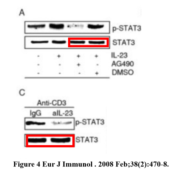 “Figure 3g: Surprisingly, a western blot in this paper was previously published with a different label in”: