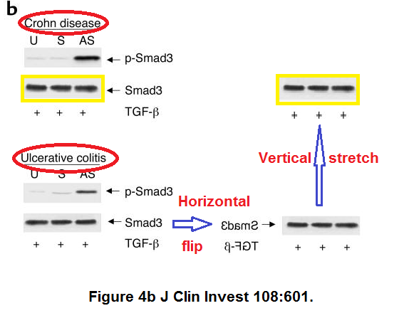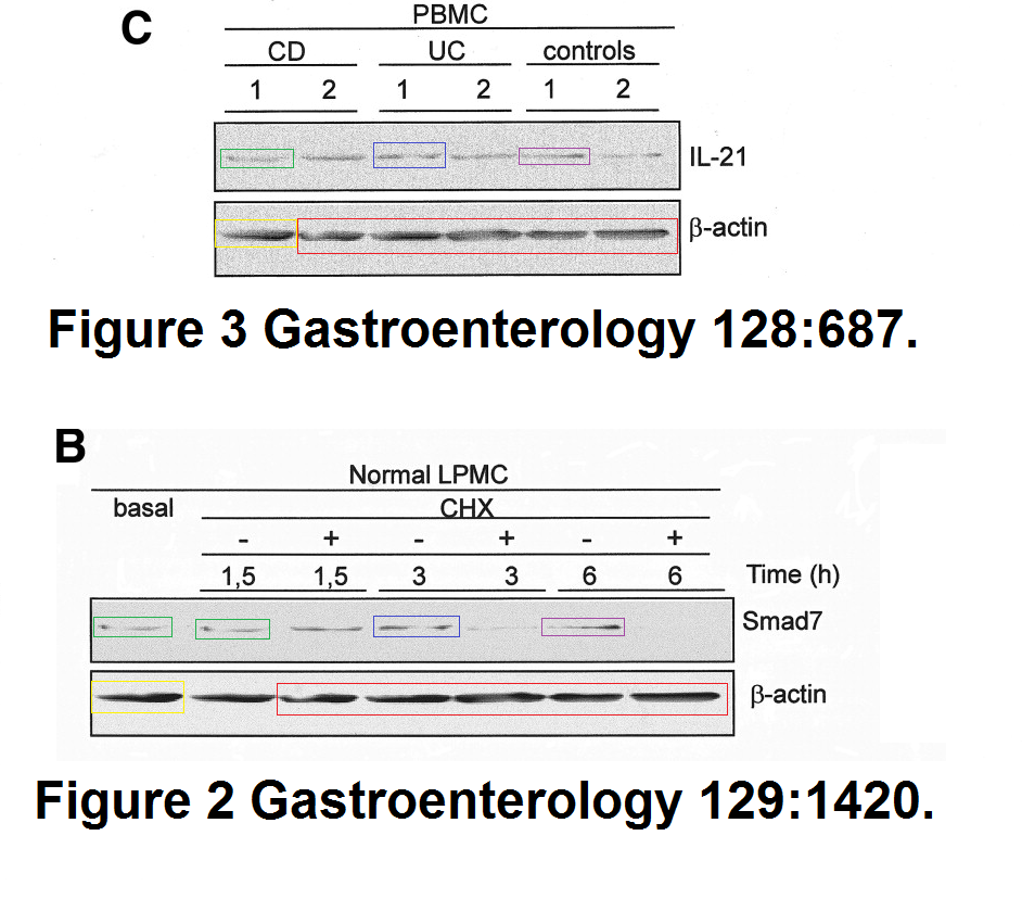 Here the Monteleone cousins again defecated into the society journal Gastroenterology, pleaseclick on PubPeer links to see even more forged gels: