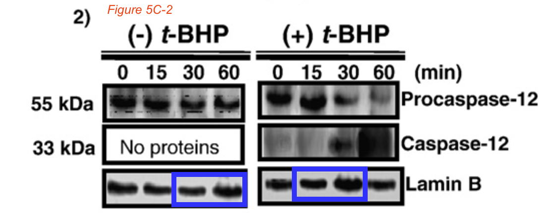 Red boxes: In the Cytosol Cytochrome c panel, the 7 uM and 14 mM lane bands look remarkably similar.”