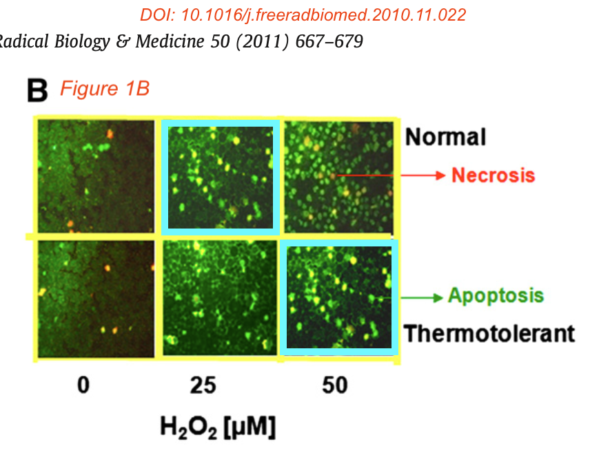 Pragathi Pallepati , Diana A. Averill-Bates Mild thermotolerance induced at 40°C protects HeLa cells against activation of death receptor-mediated apoptosis by hydrogen peroxide Free Radical Biology and Medicine (2011) doi: 10.1016/j.freeradbiomed.2010.11.022