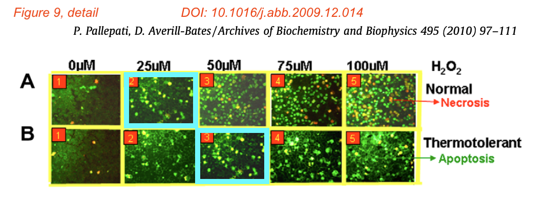 Pragathi Pallepati , Diana Averill-Bates Mild thermotolerance induced at 40 degrees C increases antioxidants and protects HeLa cells against mitochondrial apoptosis induced by hydrogen peroxide: Role of p53 Archives of Biochemistry and Biophysics (2010) doi: 10.1016/j.abb.2009.12.014