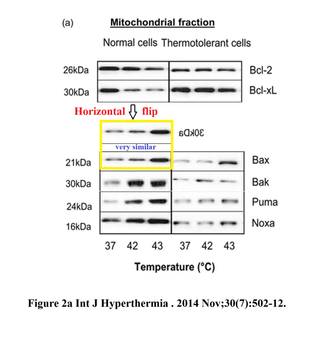 See, suddenly two decades old raw data becomes available! Well, not quite. The “original Western blot films” didn’t match the published material, but the published figure was clearly falsified in Photoshop, as Bik showed: