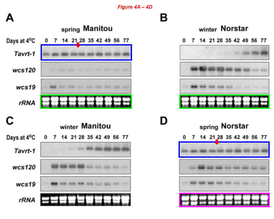 Aneurus inconstans : “The TaVRT-1 blots in Figure 4A and 4C are identical (red boxes), but the wheat lines are supposedly different.