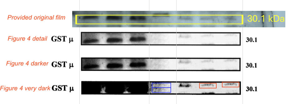 Elisabeth Bik: “Concerns about Figure 4: Boxes of the same color highlight several lanes that appear to look similar to each other”