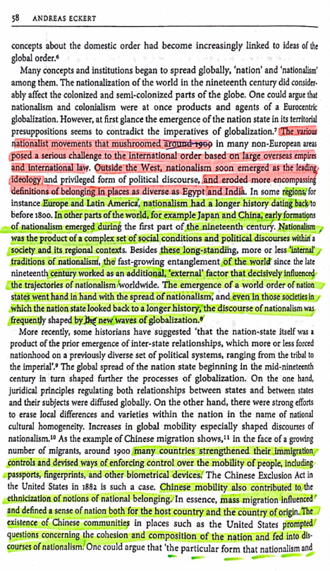 - Green: Sebastian Conrad & Klaus Mühlhahn “Global Mobility and Nationalism: Chinese Migration and the Reterritorialization of Belonging, 1880–1910” in “Competing Visions of World Order” (2007) doi: 10.1057/9780230604285_7