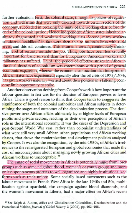 - Pink: Cooper, Frederick, “African Workers and Imperial Designs”, in “Black Experience and the Empire, Oxford History of the British Empire Companion Series” (2006/2011), doi: 10.1093/acprof:oso/9780199290673.003.0011 (not referenced)