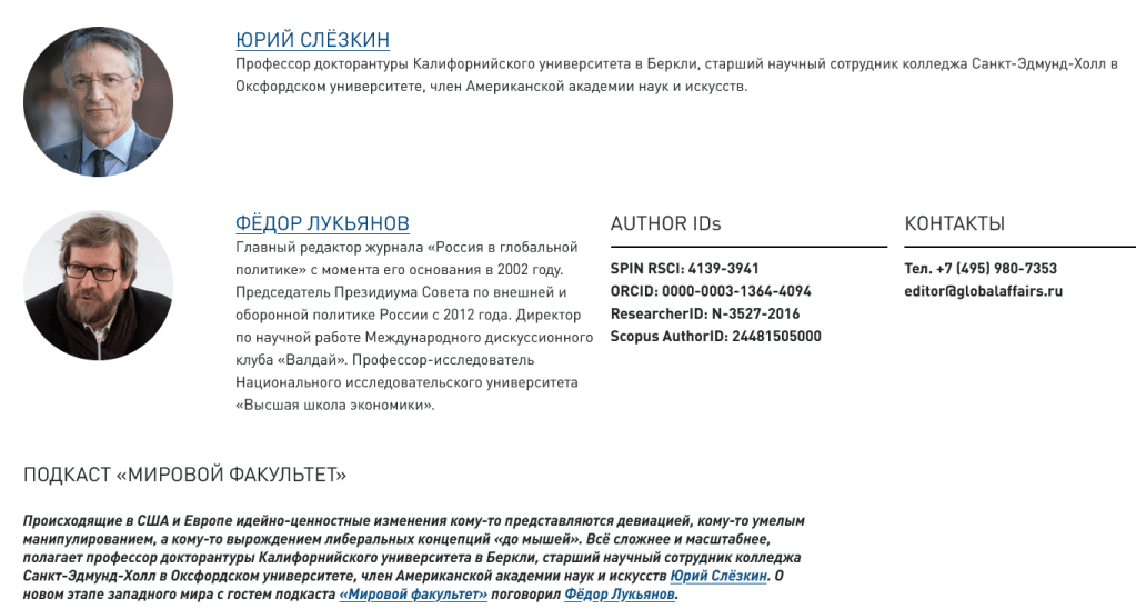 That interview was published by the journal “Russia in Global Politics“, managed by putin’s oligarch Vladimir Potanin, its editorial board members include next to Lukyanov russia’s Foreign Minister Sergey Lavrov, putin’s advisor Yuri Ushakov, and other prominent russian “politicians” and “diplomats”. Basically, a collection of war criminals, child kidnappers and murderers. Slezkine didn’t mind at all.