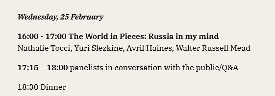 On 24 February 2026, of all days, Slezkine sat on the panel “The World in Pieces: Europe in my mind” with Timothy Garton Ash, Cambridge professor Ayse Zarakol, and the German diplomat Thomas Bagger. The next day, Slezkine spoke about what’s really close to his heart: his beloved russia, and he did this on the panel “The World in Pieces: Russia in my mind“. Other panel members were the former CIA Deputy Director Avril Haines, the University of Florida professor Walter Russell Mead, and the Italian political scientist Nathalie Tocci.