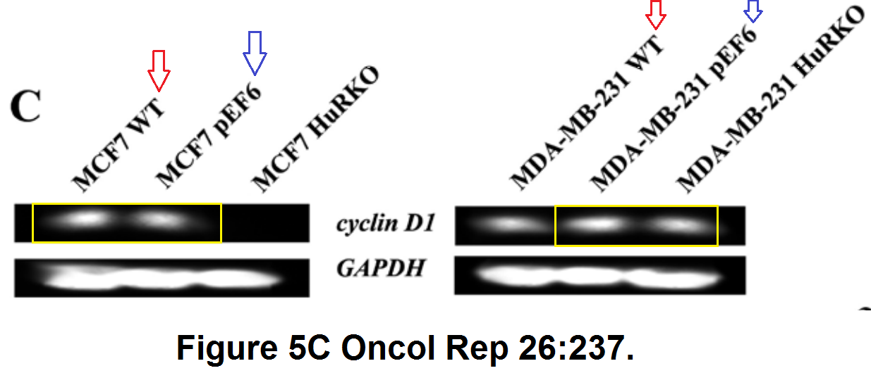 Zhu Yuan , Andrew J Sanders, Lin Ye , Yu Wang , Wen G Jiang Knockdown of human antigen R reduces the growth and invasion of breast cancer cells in vitro and affects expression of cyclin D1 and MMP-9 Oncology Reports (2011) doi: 10.3892/or.2011.1271