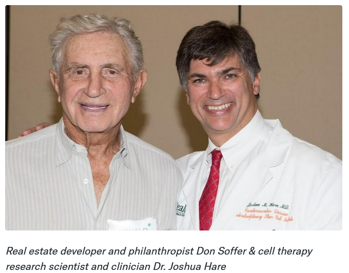 The only person to declare his financial conflicts of interests in that Cell Stem Cell paper was Longeveron’s CSO Joshua Hare, who is Senior Associate Dean at University of Miami School of Medicine, and also Director of Donald Soffer Endowed Program in Regenerative Medicine. This is relevant because Longeveron was founded in 2014 by Hare and his billionaire patron, “the man largely responsible for inventing the south Florida city of Aventura“, who died in 2025 aged 92; now Donald Soffer’s son Rock Soffer serves as member of Longeveron’s Board of Directors. Much of the clinical trial took place at the Soffer Health Institute in Aventura, FL, no biases there at all.