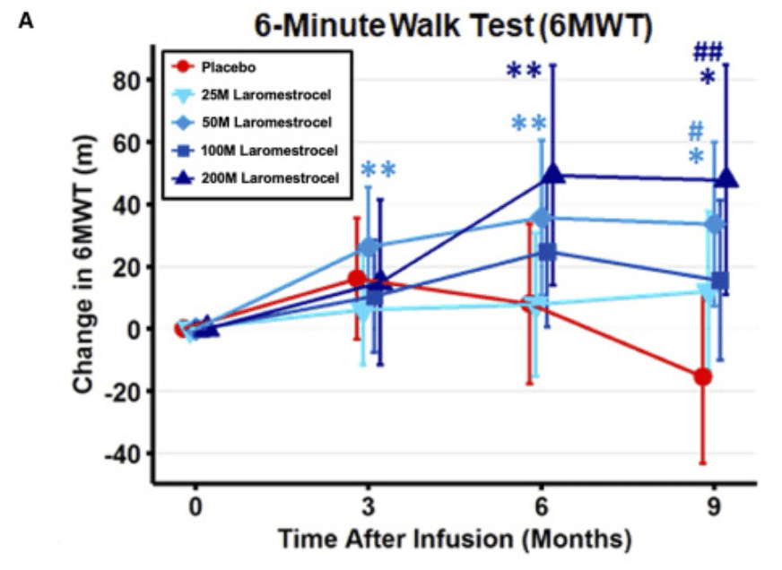 The researchers measured how far the participants – who were aged 74 to 76 and had mild-to-moderate frailty – could walk in 6 minutes before and after laromestrocel. They found that a single infusion improved their performance in a dose-dependent fashion, with no serious safety concerns. For instance, those who got the maximum dose could walk 41 metres further than those who received the placebo six months after the infusions – rising to 63 metres at nine months.”
