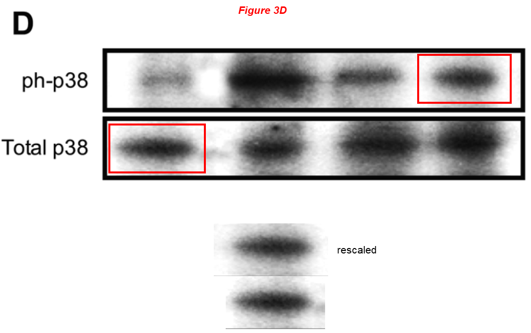 Sholto David: “Figure 11: Unexpected overlapping areas between images that should be derived from different treatment conditions, […] There is a difference in stretch and magnification in the areas labelled with the green rectangles.”