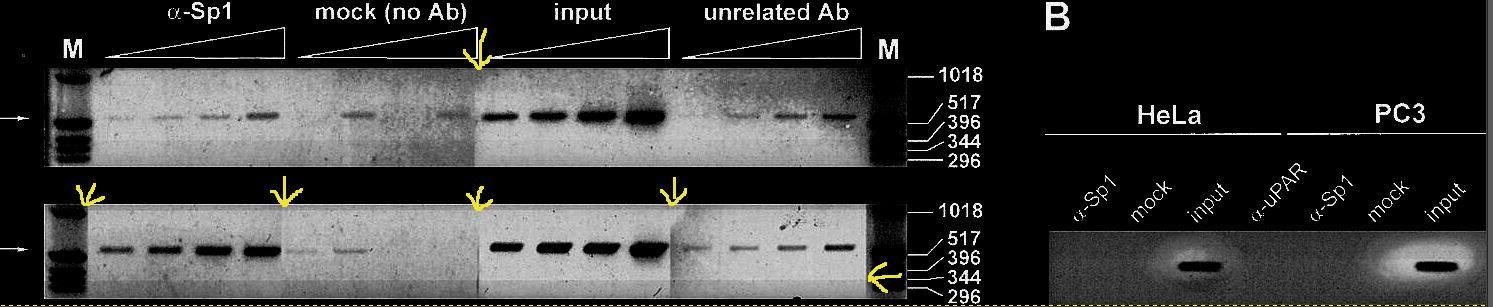 Another very old paper by Blasi and his protege Massimo Crippa. These gels are very suspiciously spliced, the lower gel is definitely not trustworthy.