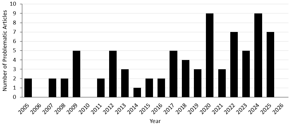 By the way, this is very much an “active shooter” situation, even though Kuniyasu seems to have published nothing in 2026 so far, in 2025 he published seven problematic articles, and in 2024 nine, in fact the 2020s have been especially busy:
