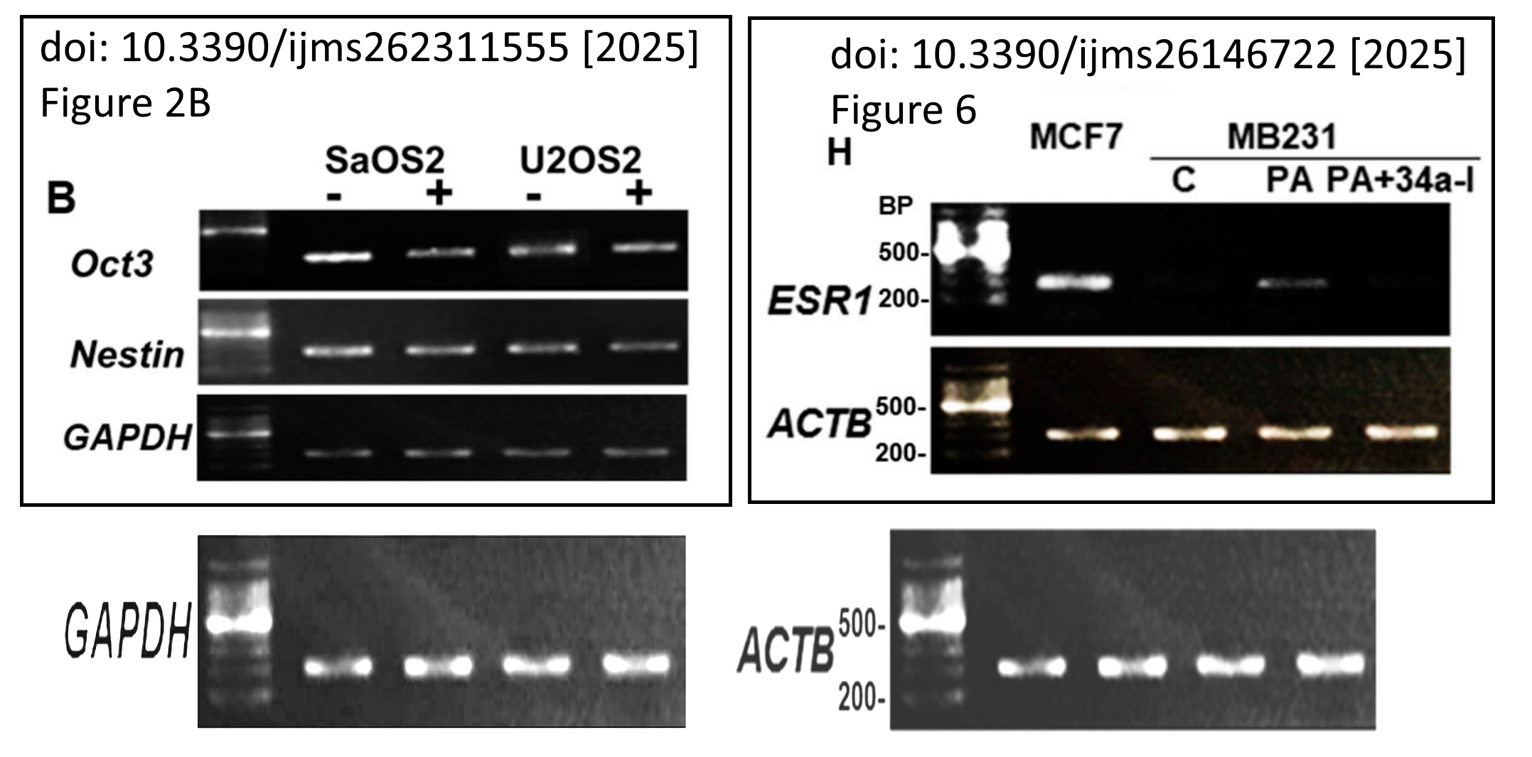 Here are two papers from 2025, in Kuniyasu’s favourite MDPI journal, with a duplicate PCR gel, these are supposed to show different cell types and genes: