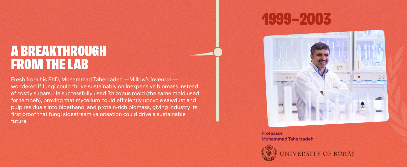 On 9 March 2026, Millow announced that their inventor and chief scientific officer “Taherzadeh, the principal investor behind Millow’s dry-state fermentation platform, is leaving his position at the University of Borås to focus on Millow full-time”. He pretends now his old boring university job was holding him back: