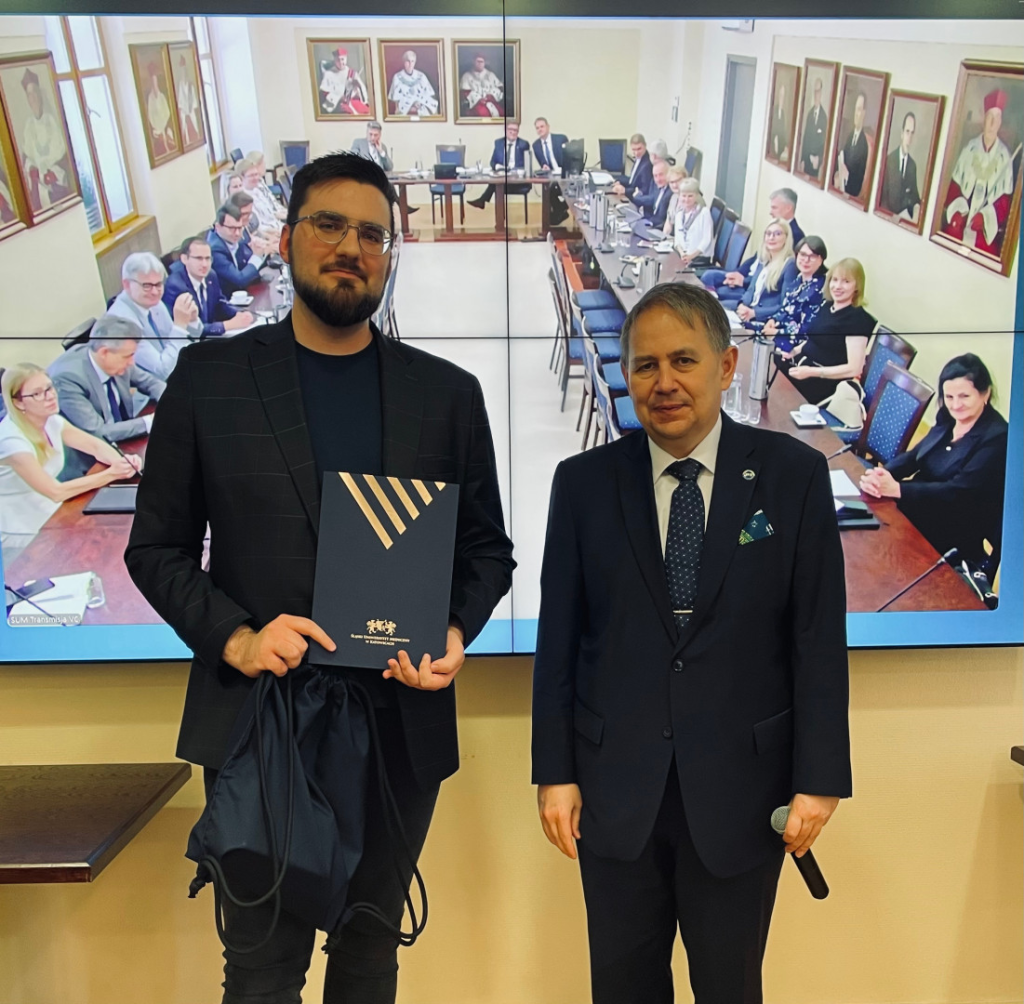 In June 2025, Lajczak was celebrated by his university and the Rector Tomasz Szczepański because he received a scholarship from the Minister of Health “for significant scientific achievements for the academic year 2024/2025“. Photo: Silesian Medical University