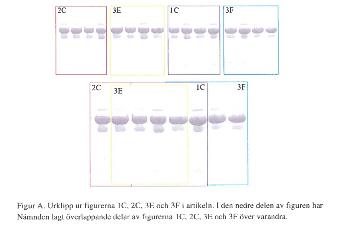 Linköping University submitted this case to NPOF on 29 April 2025. During the investigation, the forgeries were confirmed, while Kagadal “confesses that it is her and Andrea Boman who have been responsible for compiling the figures and submitting the revised manuscript to the journal“. NPOF decided that they both had responsibility for at least notificing these fake figures. As for Svenningsson, NPOF that there were no indication that he “participated in creation of counterfeit figures” or “had been aware of the forgeries or otherwise promoted these“. Another coauthor, Samuel Svensson (adjunct professor in Linköping) was not involved since his coauthors didn’t give him “the opportunity to review the final version of the manuscript where the incorrect images were included“. Svenningsson and Svensson were found to be innocent, and Kagadal and Boman guilty of research misconduct.