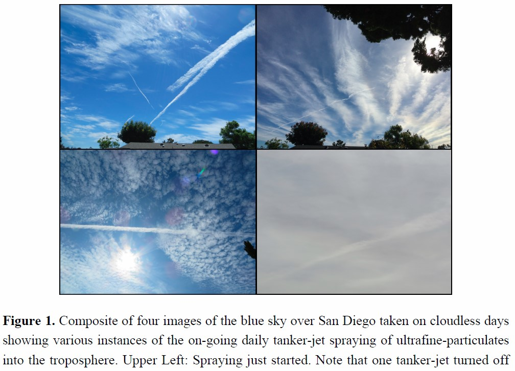 “In the Spring of 2014, I began to see particulate trails across the sky that were increasing in frequency and in intensity. By November 2014 the spraying was taking place on a near daily basis sometimes obscuring the otherwise blue sky with dark artificial clouds.”