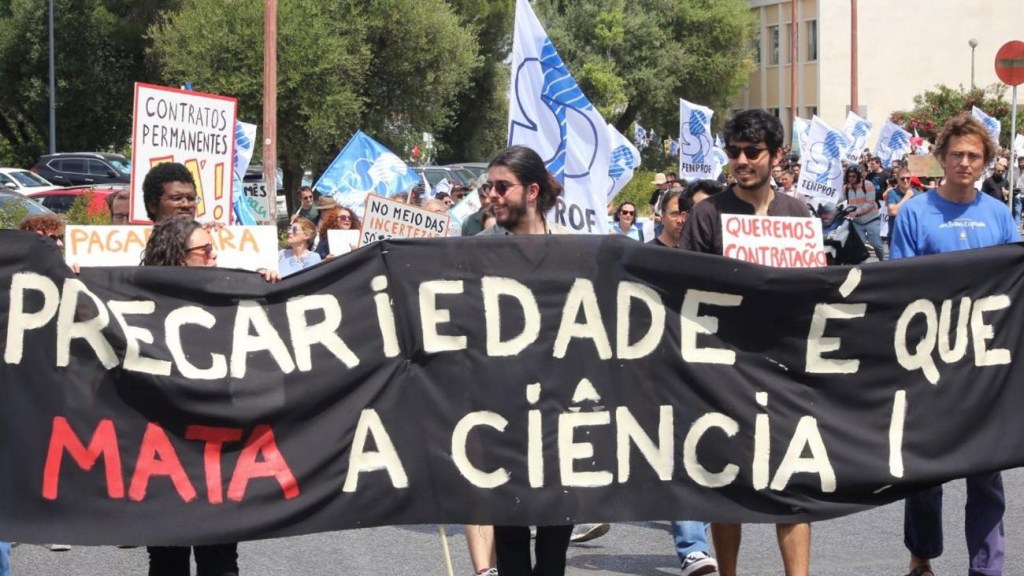 “In Portugal more than 95% of all research activities are carried out under precarious labour conditions, by undergraduate and PhD researchers employed under a variety of temporary contracts, often with limited or no benefits, and no access to a career.” –